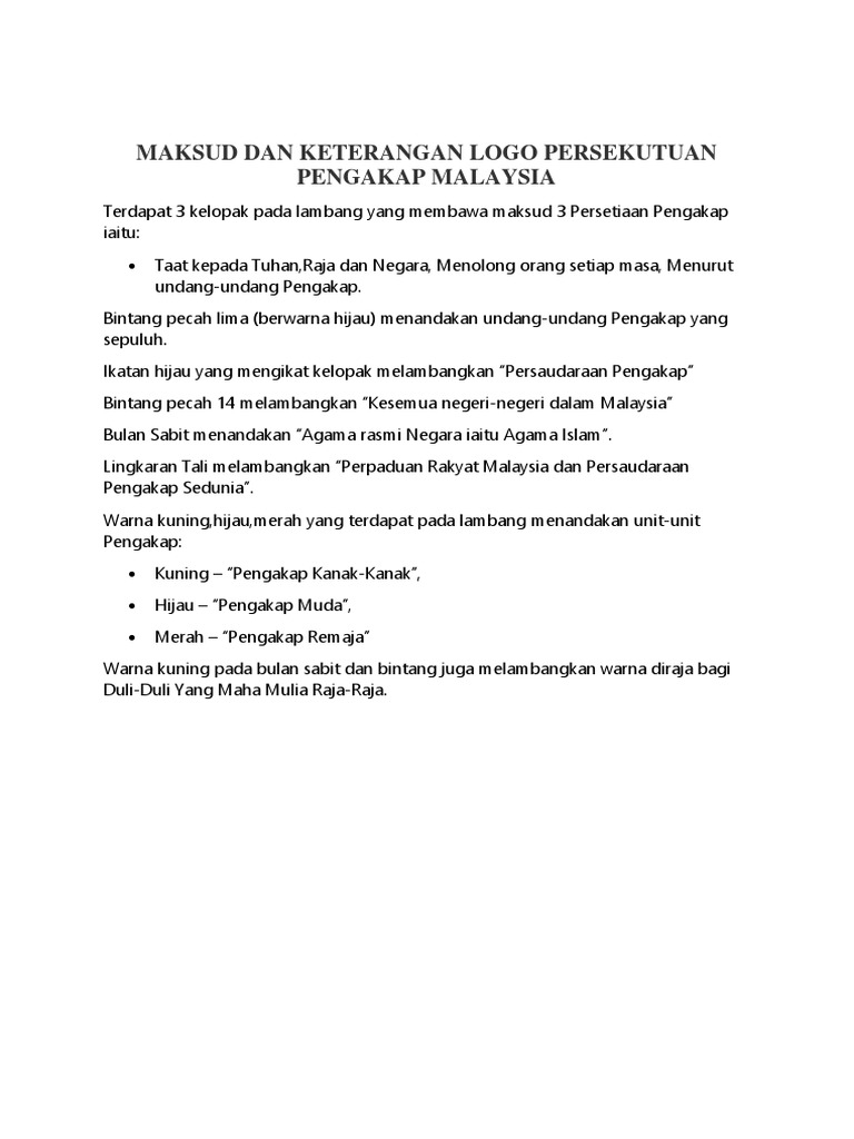 Doc Maksud Dan Keterangan Logo Persekutuan Pengakap Malaysia Dokumen Tips